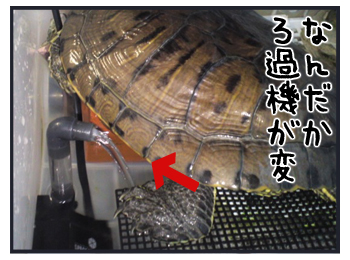 ろ過機のパイプ(?)を外すくらい暴れております。