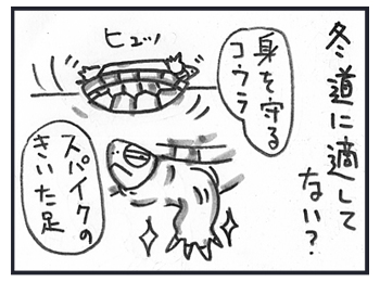ガシッと氷に食い込む爪!転んでも腰を守る甲羅!!