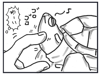 「亀に人見知られた!!」って。笑。