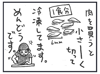 一食分でラップで包んで冷凍。あげるときは自然解凍。