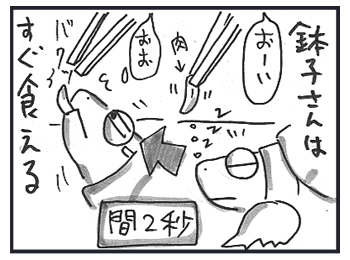 火が通ると食べないし。ちょっと、めんどうですよ?鉢子さん。